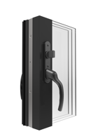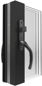 Vår utåtgående altandörr kan fås med med fyllning som linjerar med våra fönster eller som helglasad dörr. Dörren levereras med broms för att kunna låsas i öppet läget.
